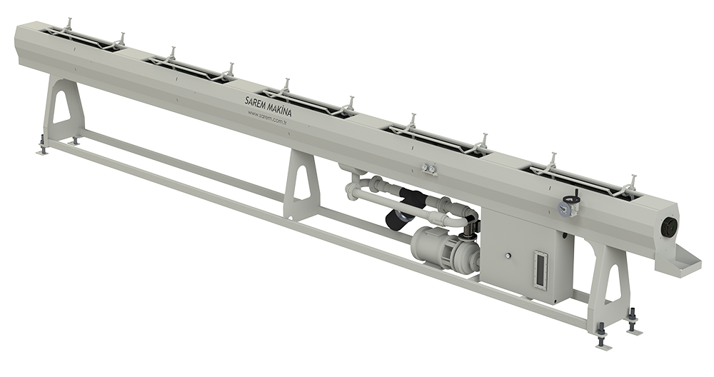 Üretim bandımız, 16 mm’den 1600 mm boru çapına kadar özelleştirilmiş soğutma tanklarının üretimine olanak tanımaktadır. Sarem soğutma tankları, yüksek kapasitede boru üretimini desteklemek ve üstün kalitede ürün elde etmek amacıyla özel olarak imal edilmektedir. Bu tanklarda nozulların tıkanmasını önlemek için özel filtreler kullanılmaktadır ve sprey nozulları yoğun bir şekilde yerleştirilmektedir. Müşterilerimizin ihtiyaçlarına göre soğutma kapasitesi ve boru çapına özel imalatlar gerçekleştirilebilmektedir. Ayrıca, tanklarda kullanılan pompalar Sarem makineleri için özel olarak tasarlanmıştır.